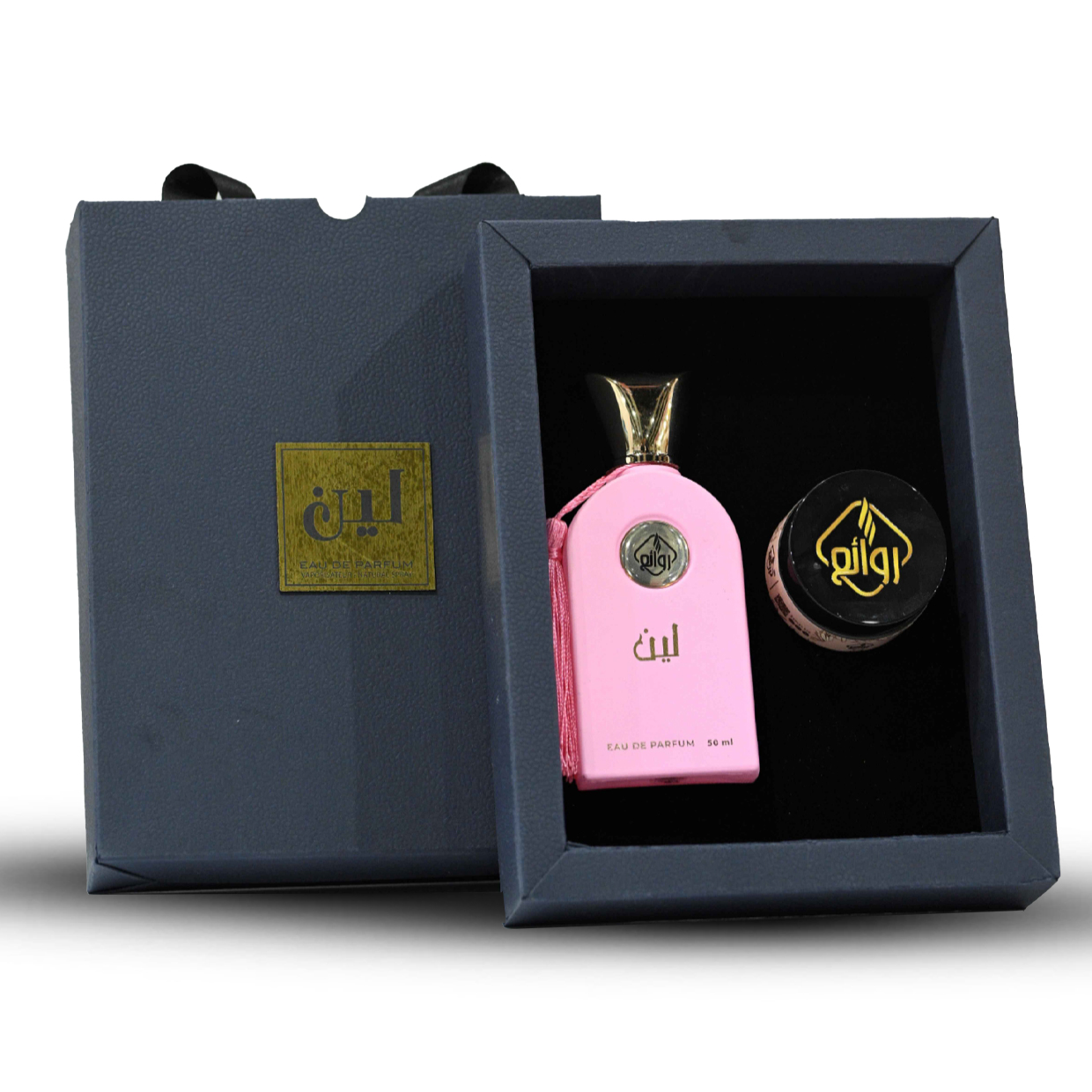 استمتعي بتجربة عطرية ناعمة مع “لين” من روائع، المجموعة التي تضم زجاجة عطر ومخمريّة بنفس الرائحة الساحرة.